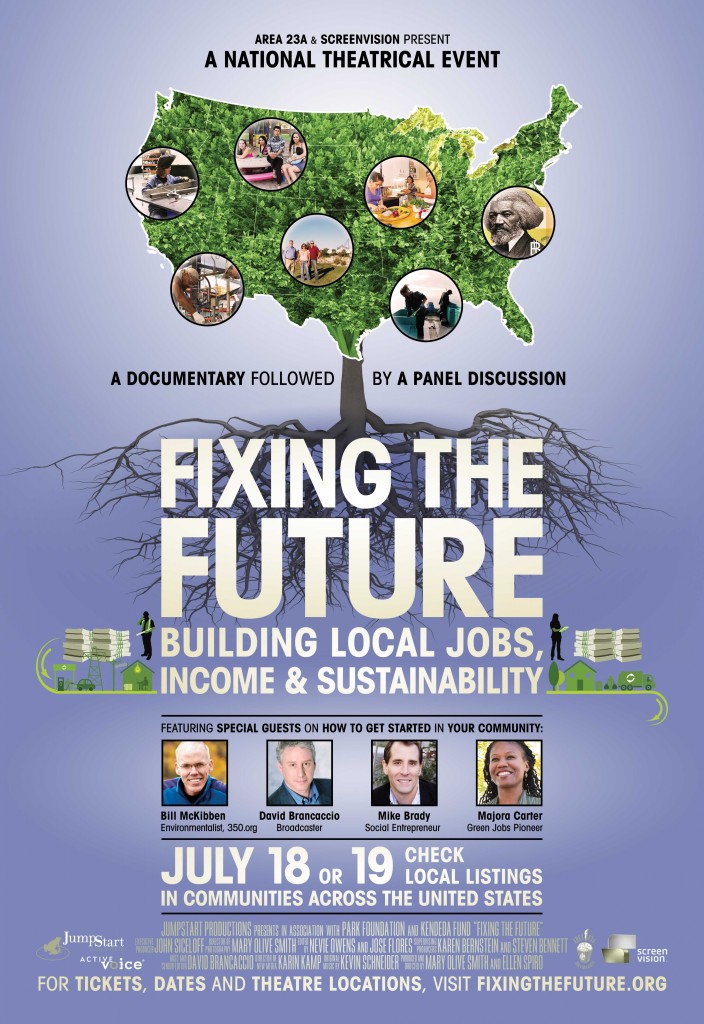 Cville TimeBank is hosting a local screening of the film, Fixing the Future, coming to theaters across the US for a special one-night screening event. We hope you’ll make plans to attend! Join us on July 18 at 7:30 at the Carmike Cinema, 1005 Gardens Blvd in Charlottesville (behind Pier1 Imports on 29North) for this special screening.
